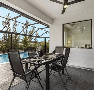 Two additional bedrooms include walk-in closets, and the additional bathrooms — one serving as a convenient pool bath — are equally stylish and thoughtfully designed.